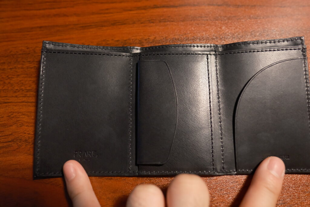 PRESSo Noirの収納力は申し分なく、キャッシュレス決済がメインの生活を過ごす上でキャッシュレス非対応の店舗での対応に必要なものを持ち歩くことができます。