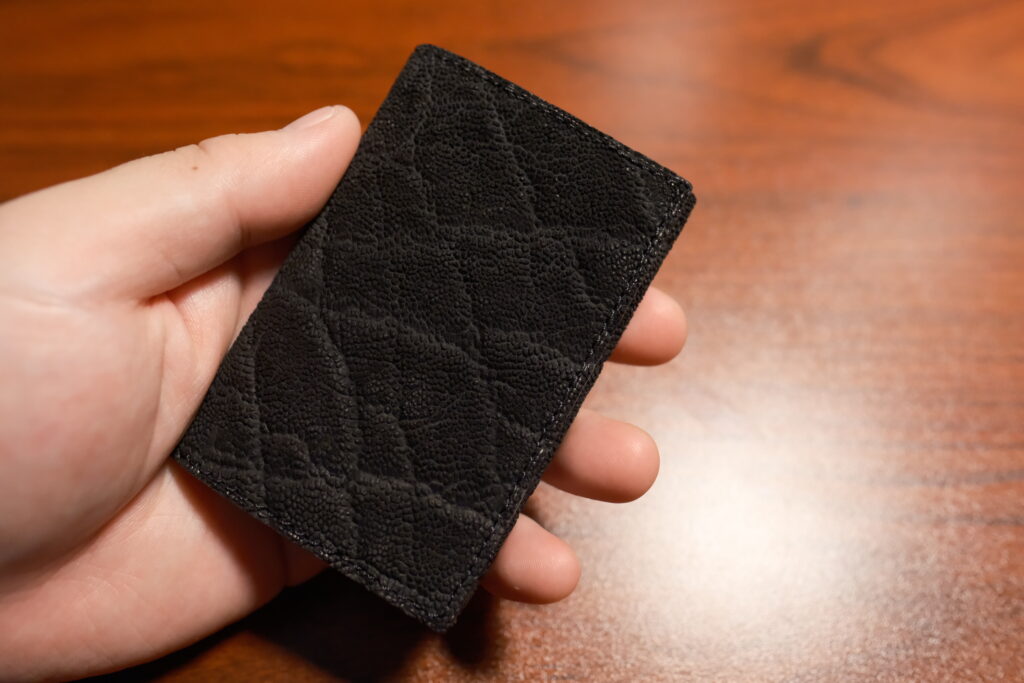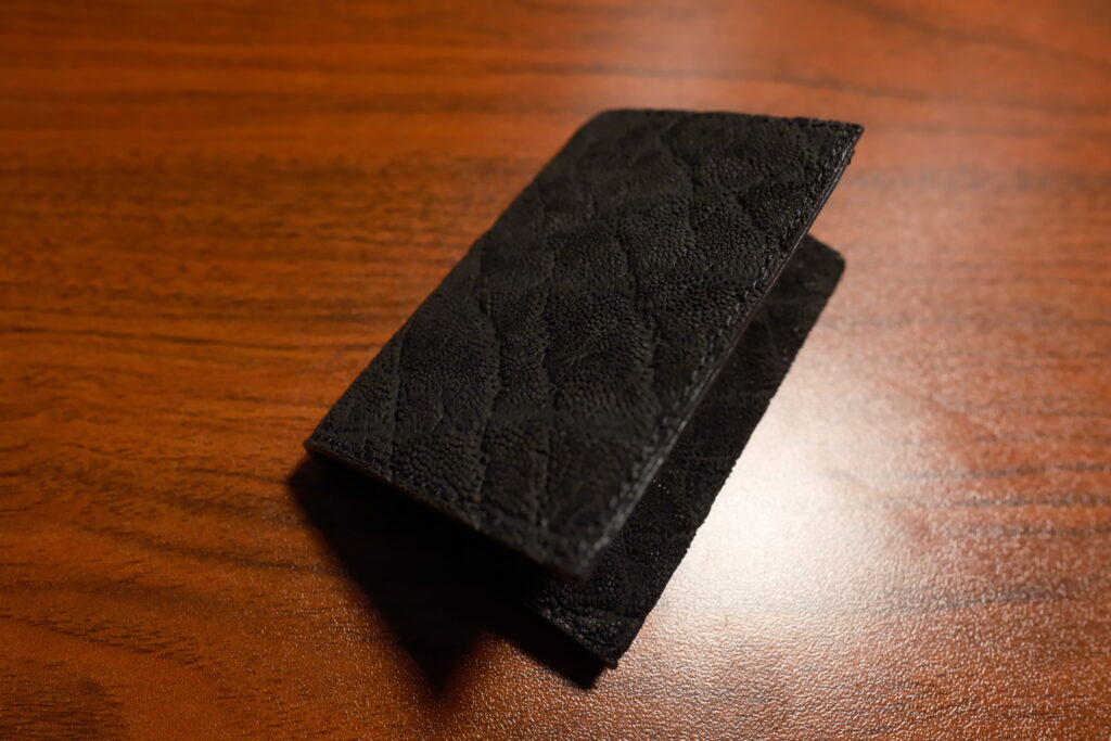 その中でもエレファントレザーを選択した理由は傷がついても一番目立ちにくそうな革だったからです。