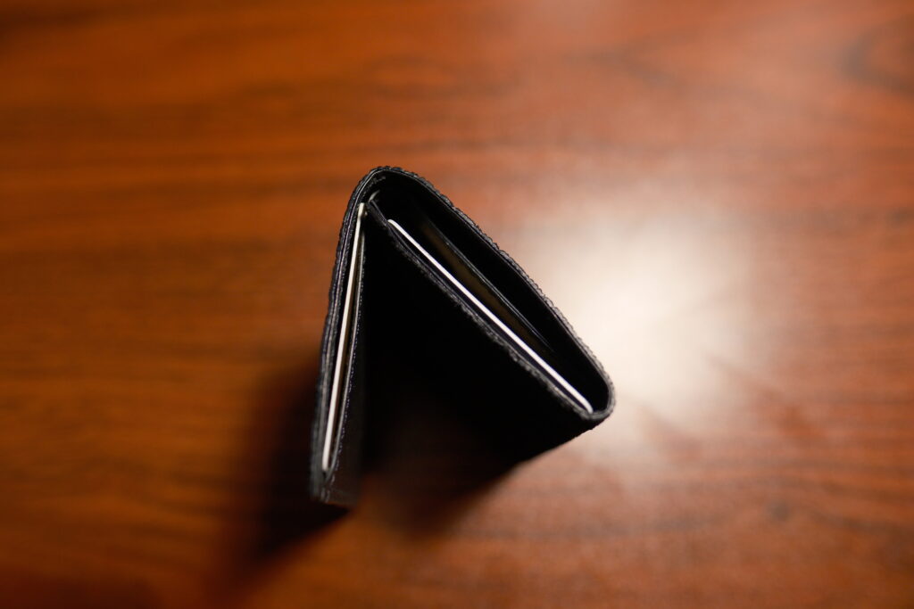 クレジットカードや運転免許証を持ち歩くためのミニウォレットと先日購入したmokuの長財布がほぼ同じ価格というのは冷静に考えると思うところもありますが、買って後悔はありません。