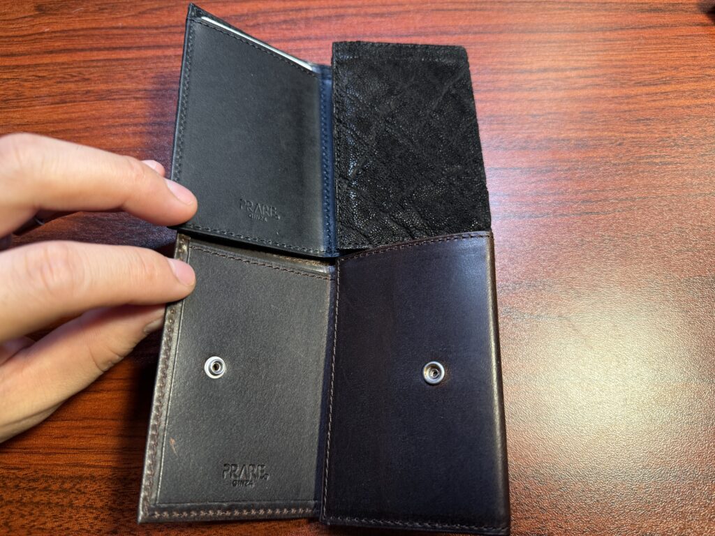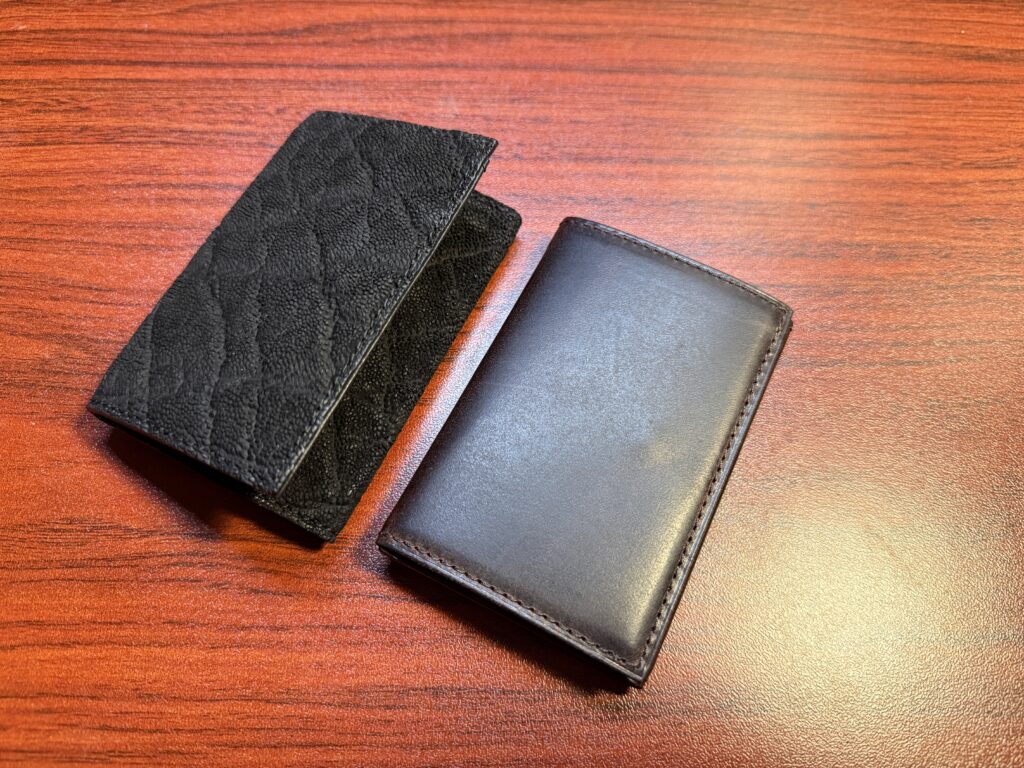 今までスマホの裏に貼り付けていたMagSafeウォレットと並べてみると別格の質感です。